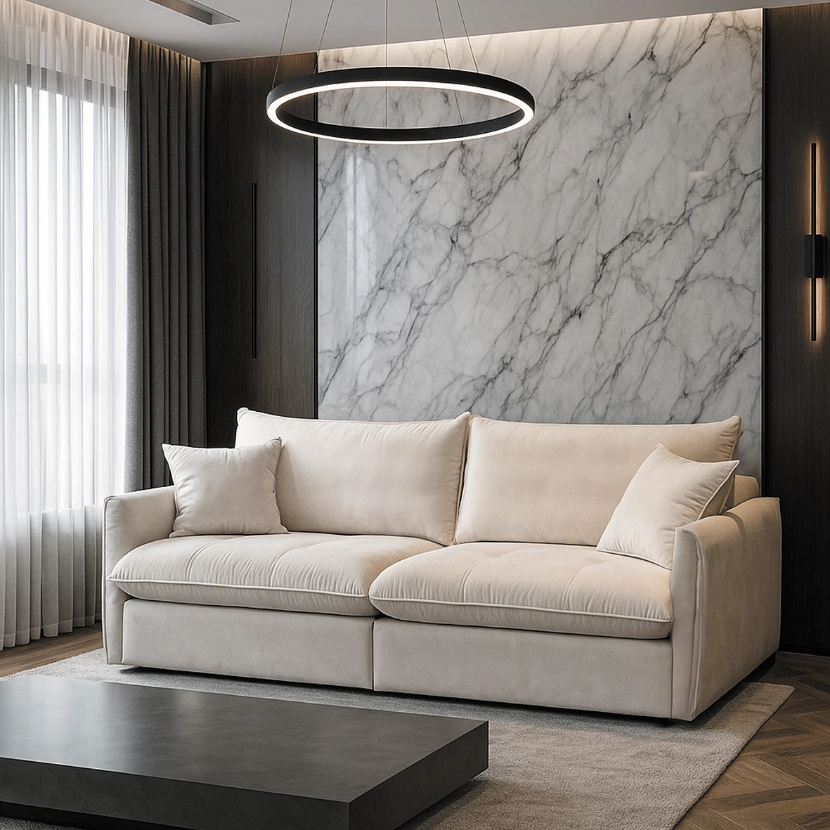Produzido com atenção aos mínimos detalhes, com matéria prima de alta qualidade no mercado de estofados, nossos sofás unen conforto, funcionalidade e estética. Perfeito para quem valoriza, qualidade, design de interiores com sofisticação.