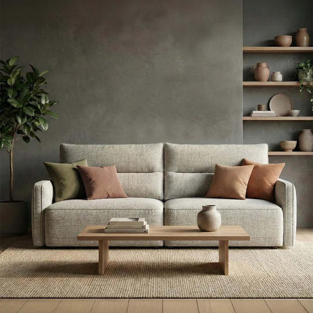 CATÁLOGO COM OPÇÕES DE TECIDOS EM LINHO, VELUDO SUEDE, BOUCLE OU CHENILE.