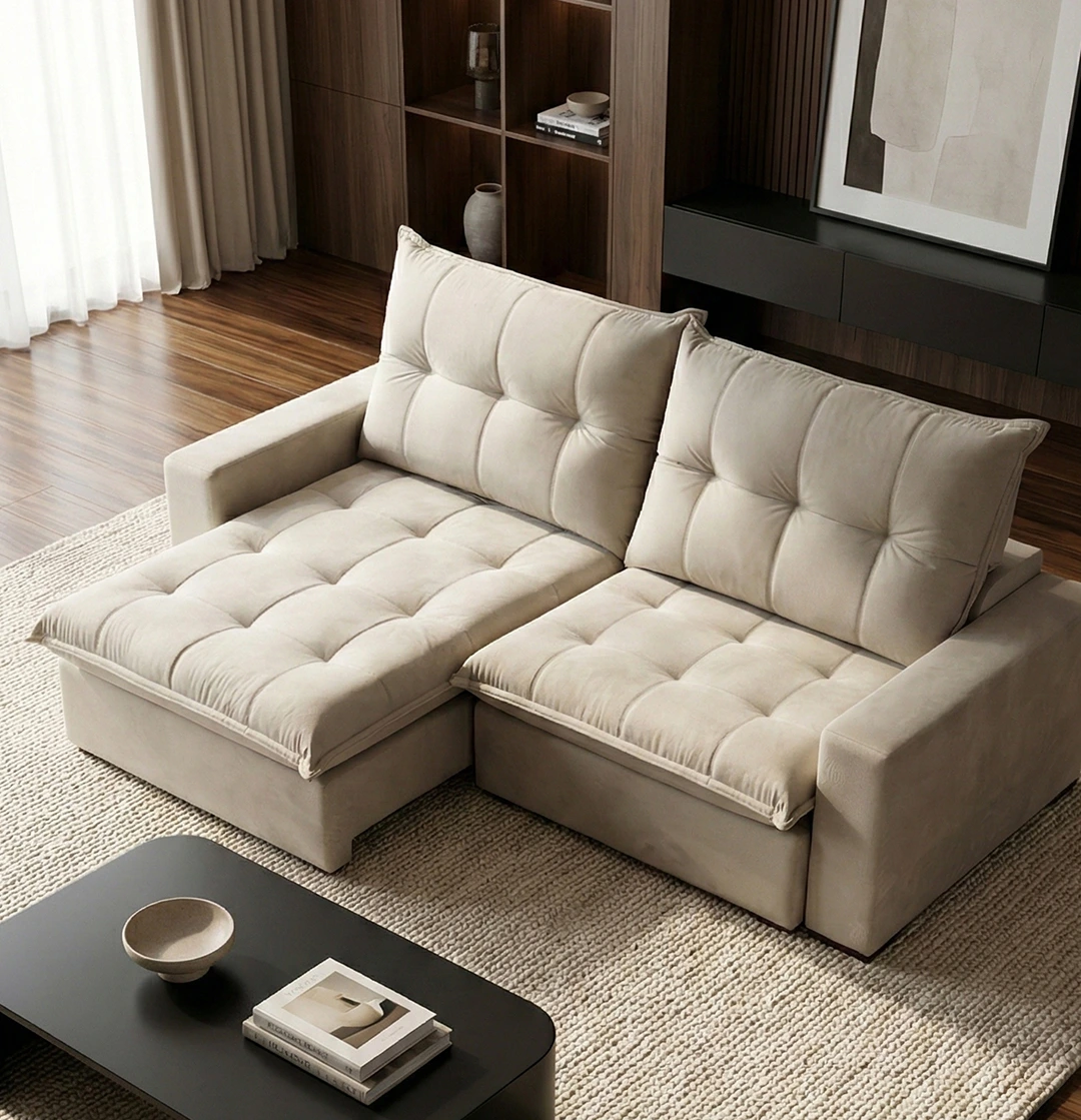 ASSENTO: MOLAS BONNEL + MOLAS ENSACADAS + ESPUMA HRD30 + FIBRA SILICONADA + PERCINTA ITALIANA PNEUMÁTICA